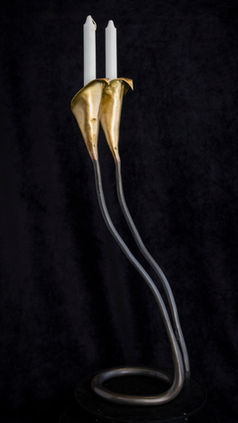 Metal flowers for the home, floral-designed candleholders and bowls.